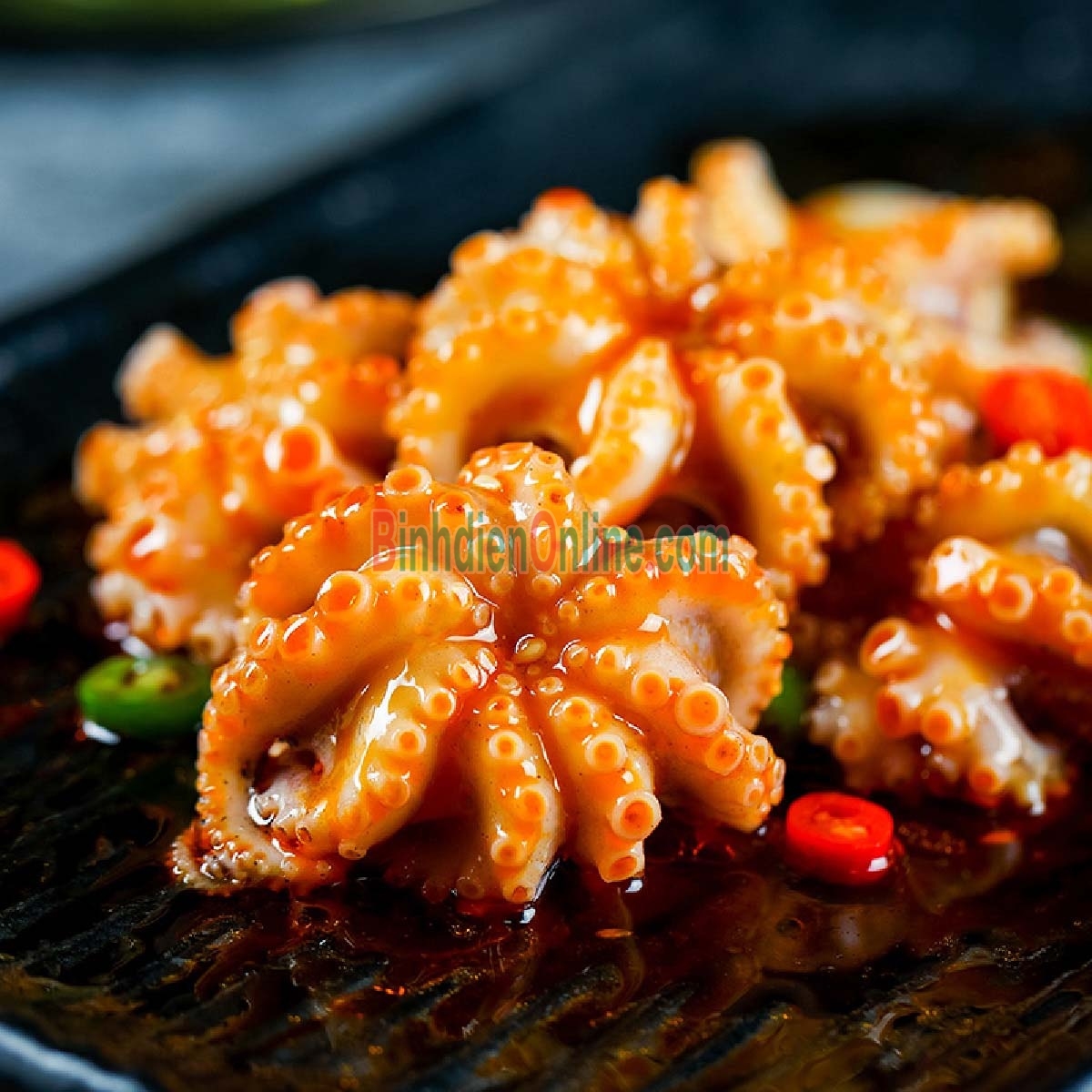 Bạch tuộc xào chua ngọt hấp dẫn, kích thích vị giác.