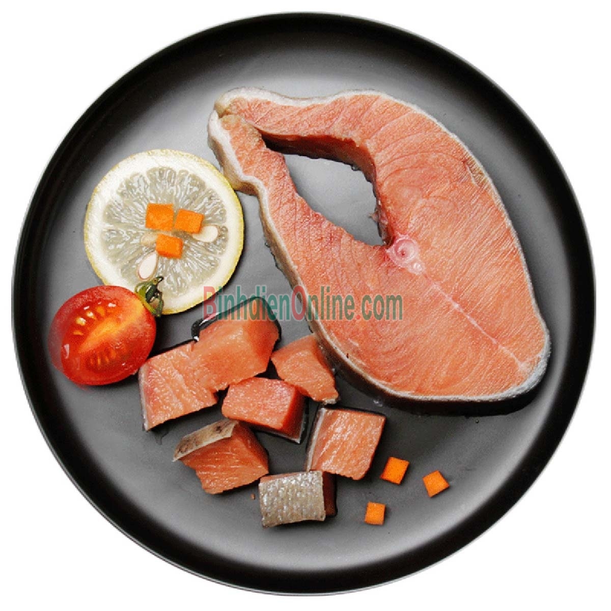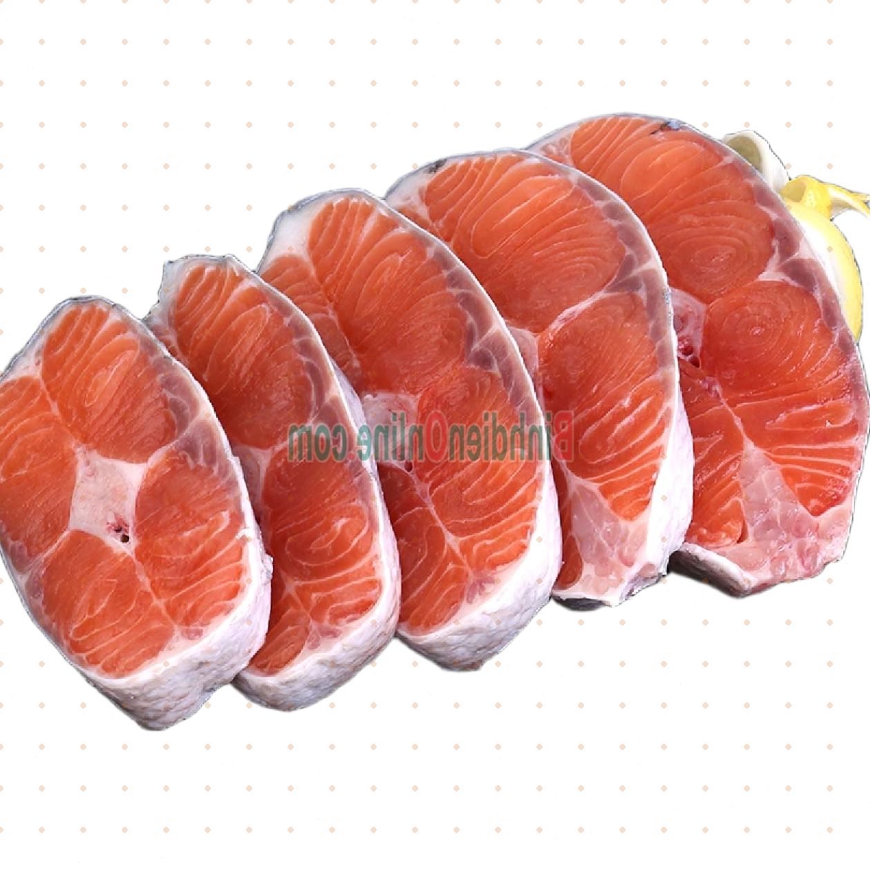 Hình thức: Cá hồi cắt khoanh tiện lợi, dễ dàng cho nhiều cách chế biến.